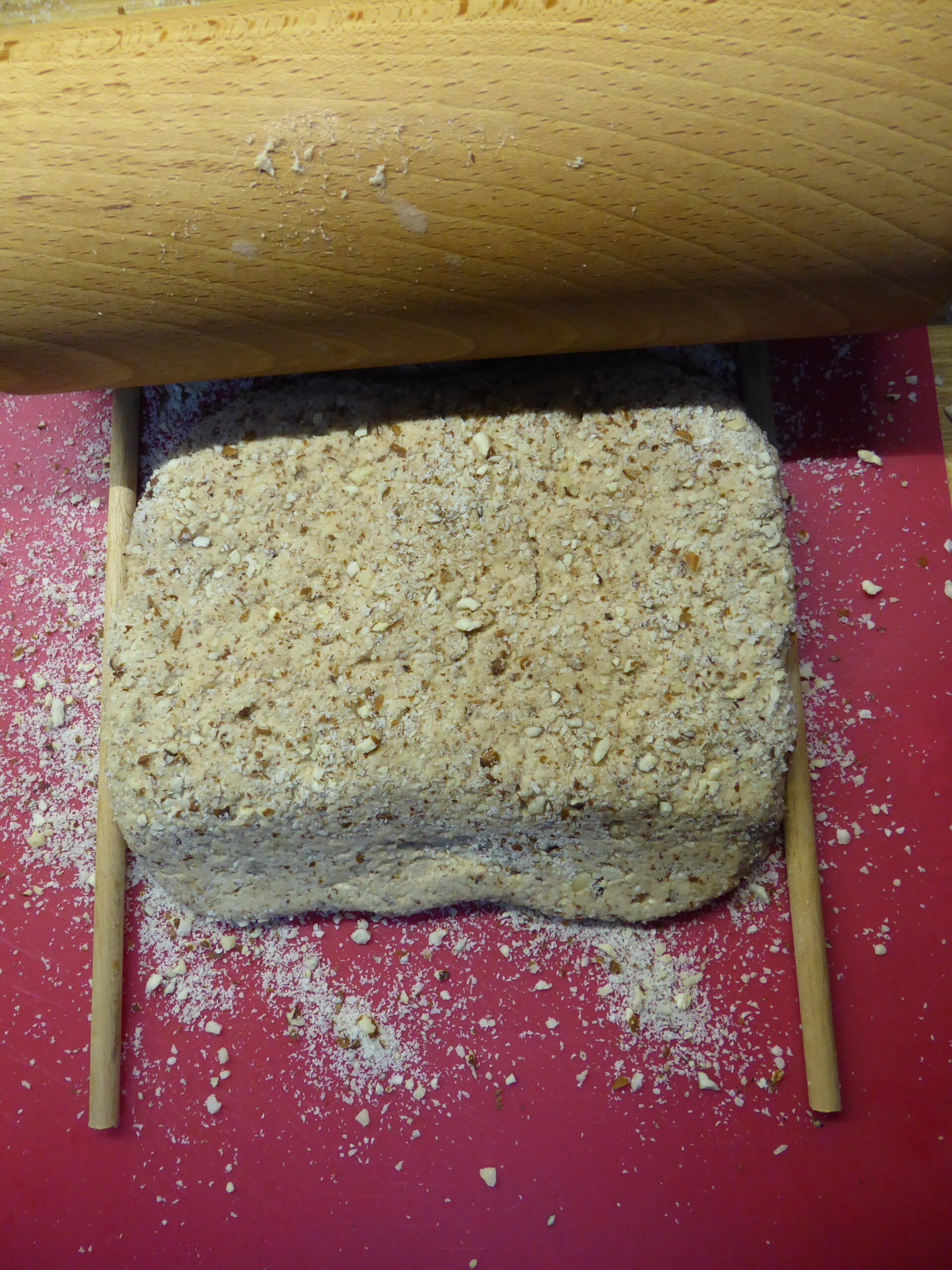p1020228 von Peter Lohrer|Veröffentlicht am 7. November 2016-mit den Abmessungen 1920 × 2560 Bilder Navigation Zurück Weiter So ausrollen, daß das Rollholz links und rechts auf z.B. Holzdübel, Durchmesser ca. 7-8 mm aufliegt. Unter- und Oberseite des Teiges mit gemahlenen Haselnüssen oder gemahlenen Mandeln bestreuen.